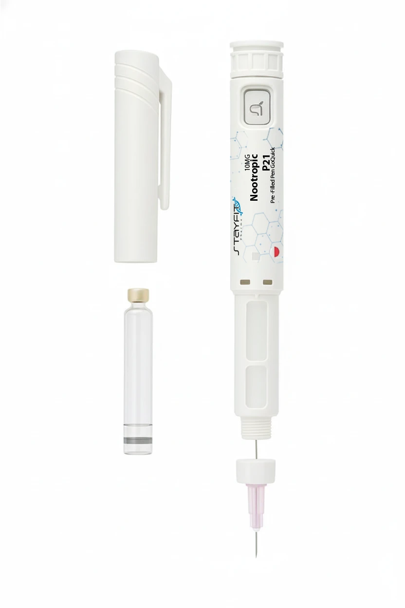 Overview of P21 (P021) Peptide P21, also referred to as P021, is a synthetic peptide designed to mimic the neurogenic and memory-enhancing properties of Cerebrolysin through reverse engineering. By isolating the active components of Cerebrolysin that interact with ciliary neurotrophic factor (CNTF), scientists created a compound capable of optimizing brain health. To ensure efficacy, P21 utilizes an adamantane base, which protects the peptide from enzymatic breakdown and facilitates its passage through the blood-brain barrier for subcutaneous delivery.